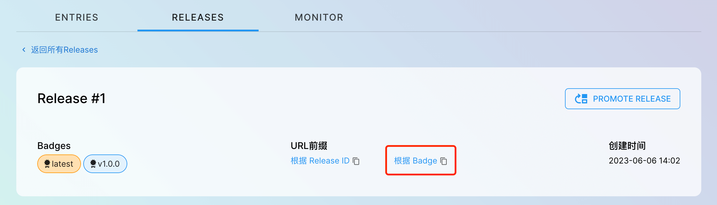 创建新的发布版本 "Release #1",创建并分配 Badge "v1.0.0",在「RELEASES」页面,复制以 Badge 为前缀的 URL,记为 UOS CDN URL