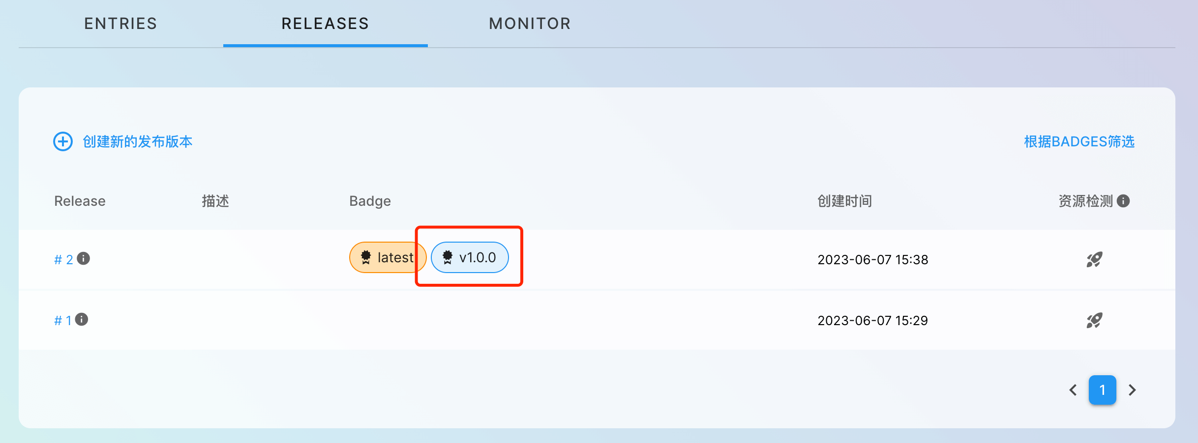 修改Entry.cs文件内容,重新打包dll上传,创建新的发布版本 "Release #2",将 Badge "v1.0.0" 指向 "Release #2"。