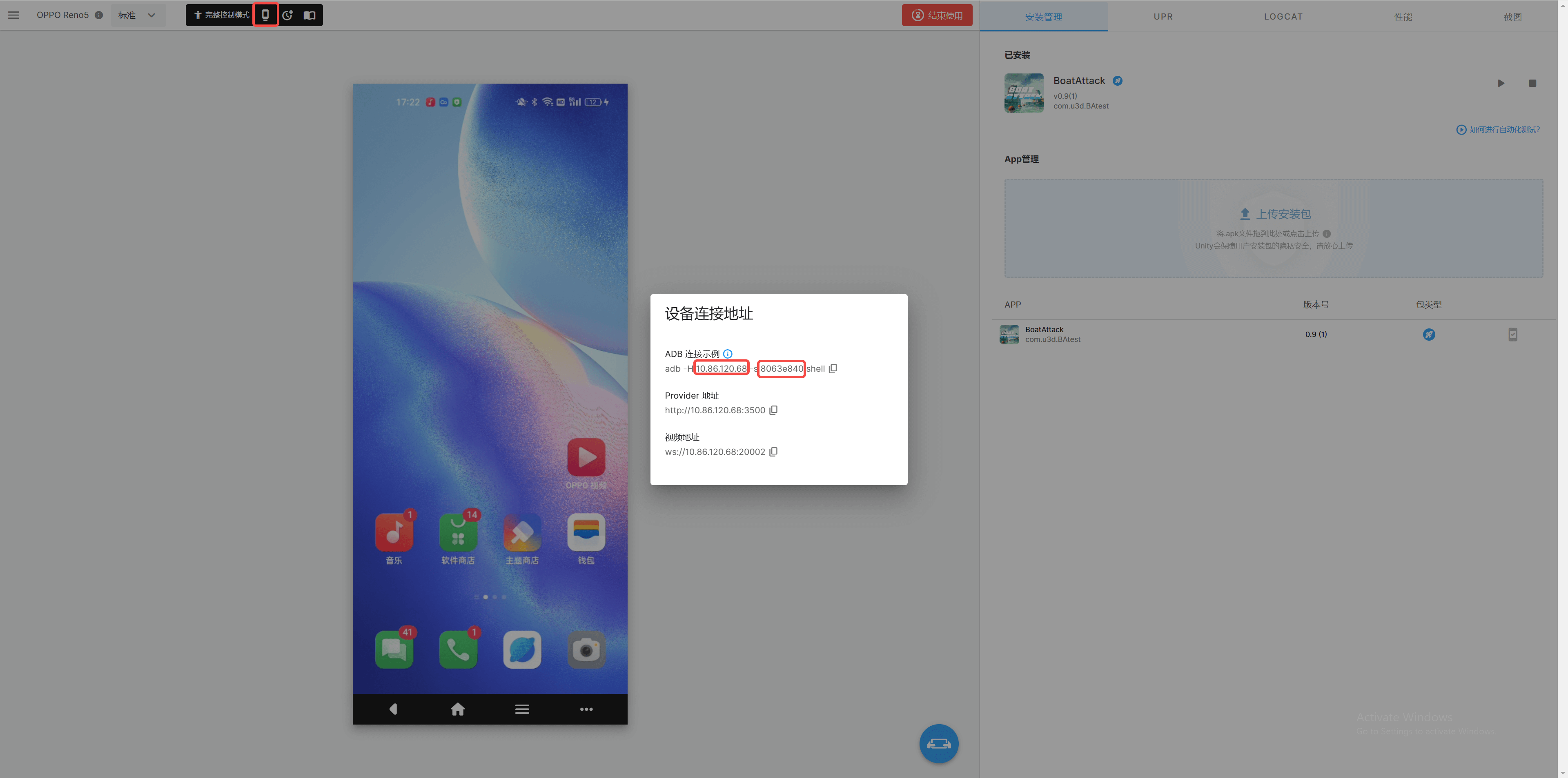 点击设备地址按钮,获得私有Provider的 IP 和设备的序列号。