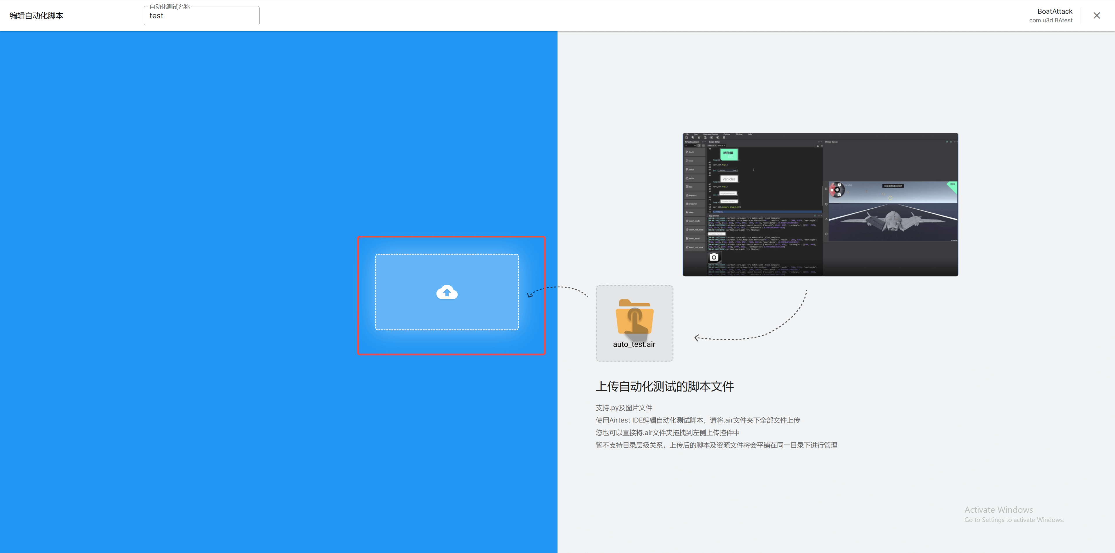 将Airtest工程.air文件夹下所有文件拖入到上传控件中。