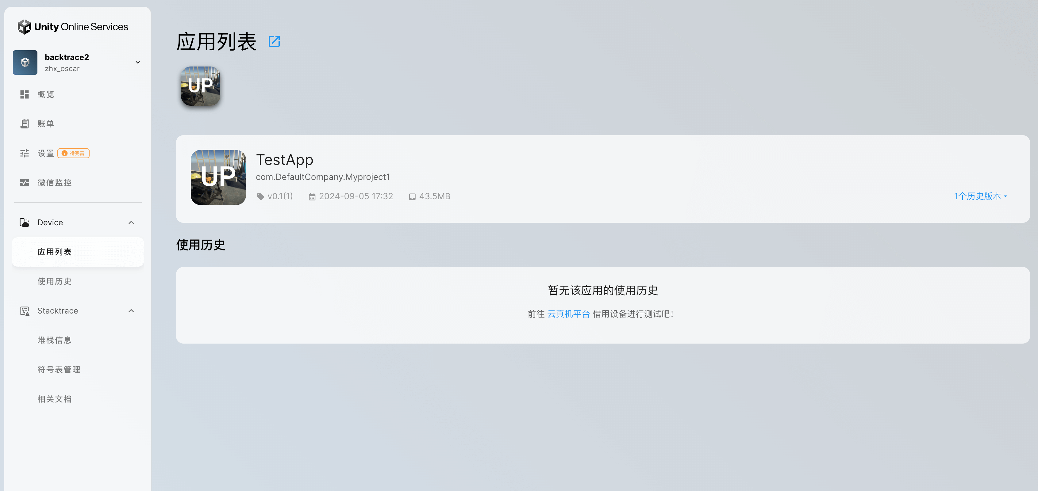 点击 UOS Device 面板上的 「Click to view uploaded APKs」 会跳转到 UOS Device 应用的应用列表管理界面,在这里可以查看已上传的apk文件。