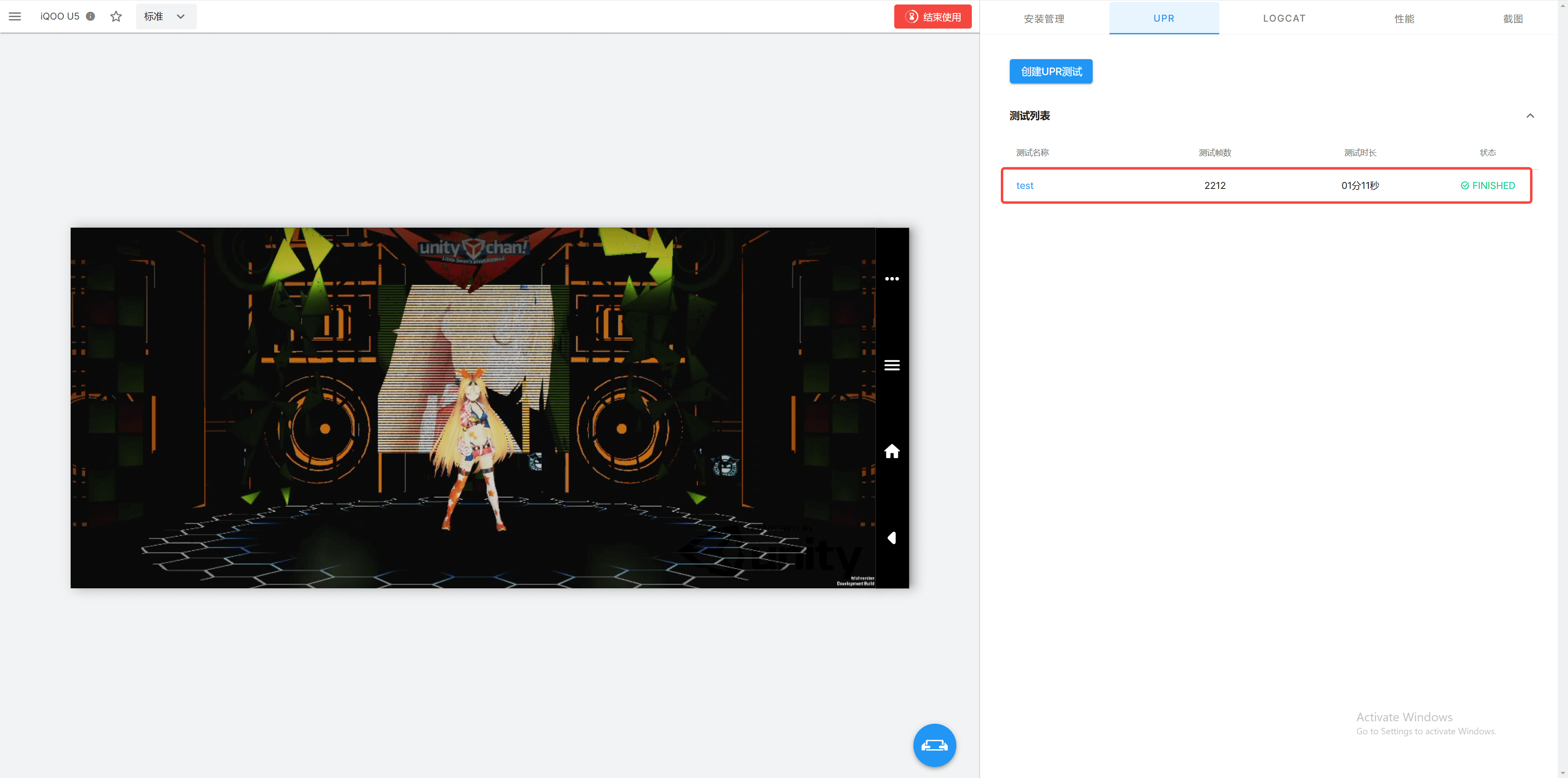 测试结束后,后台需要一段时间来处理测试数据,待测试状态变为Finished, 可以点击测试名跳转到upr数据面板界面。