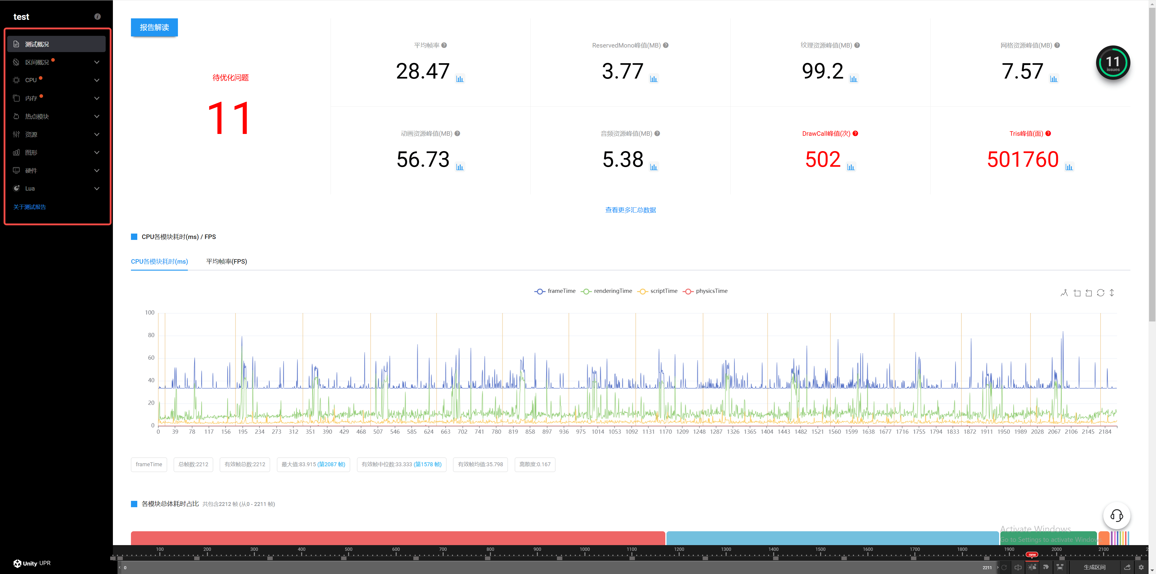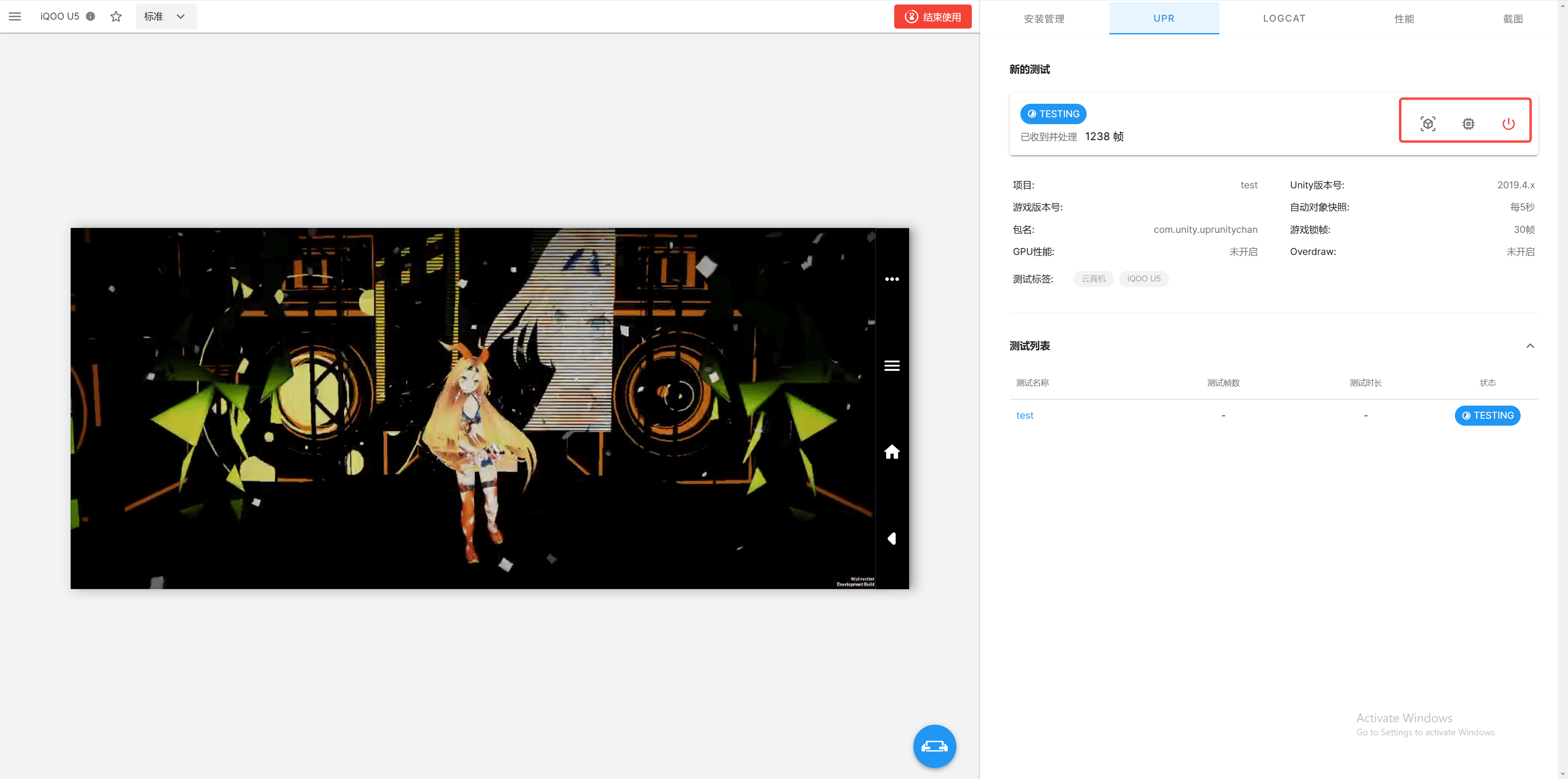 测试运行中,可随时点击获取对象快照和内存快照,待测试需要的时间后,可以点击关闭按钮结束upr测试。