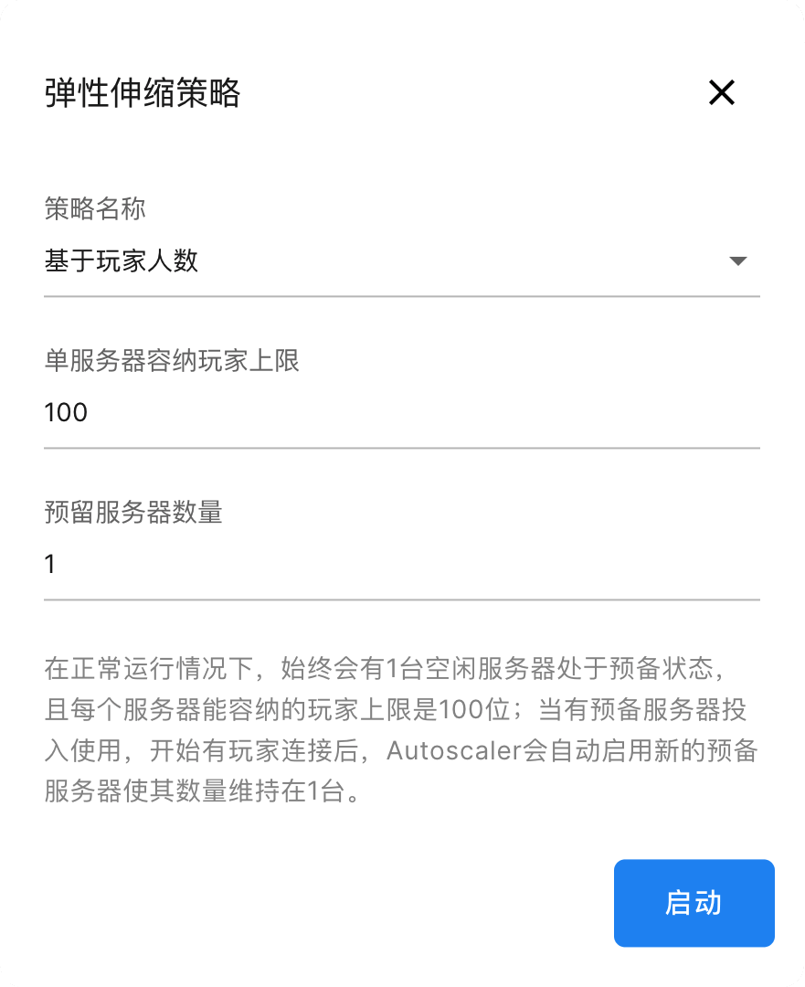 Func Stateful 支持 基于玩家人数 对游戏服务器进行弹性伸缩。只需要对 服务器单服务器容纳玩家上限 和 预留服务器数量 进行配置, Func Stateful就会基于服务器中的玩家数量进行弹性伸缩。