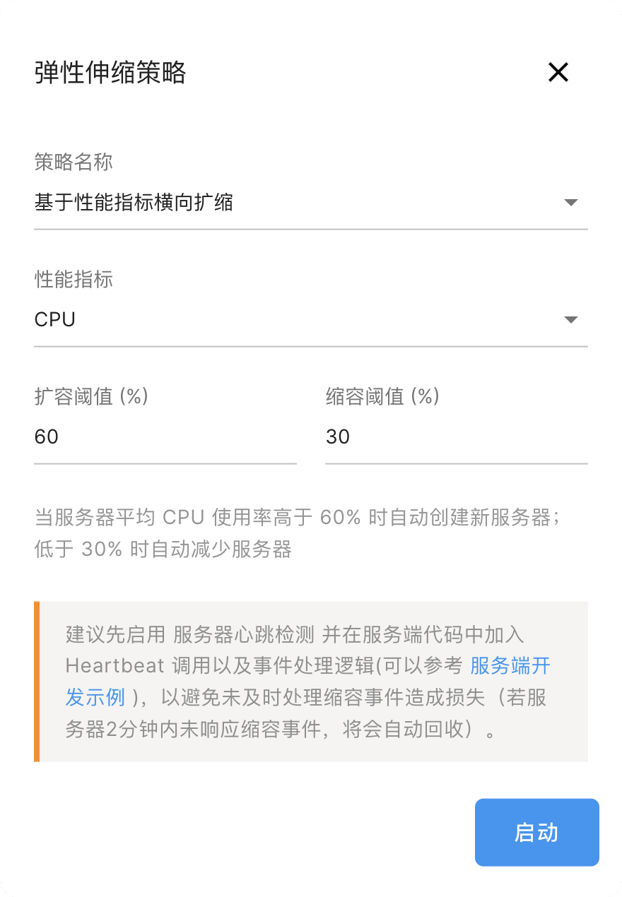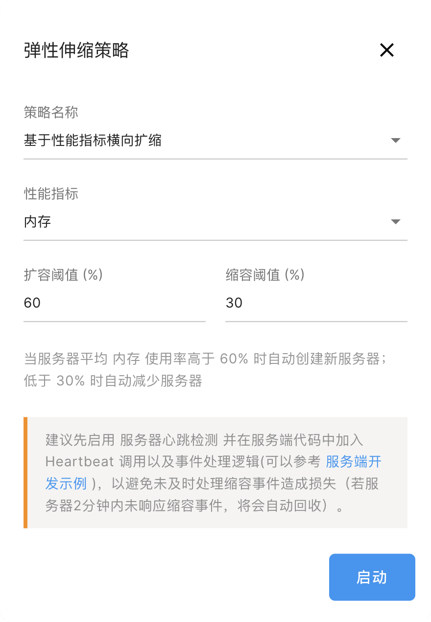 可以在 Func Stateful 的服务器页面启用 服务器弹性伸缩 功能,并在策略窗口中对配置规则进行灵活地调整。