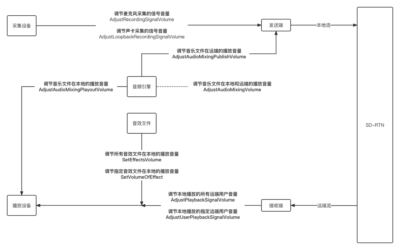 本文介绍如何设置音频采集和播放、音乐文件播放的音量。