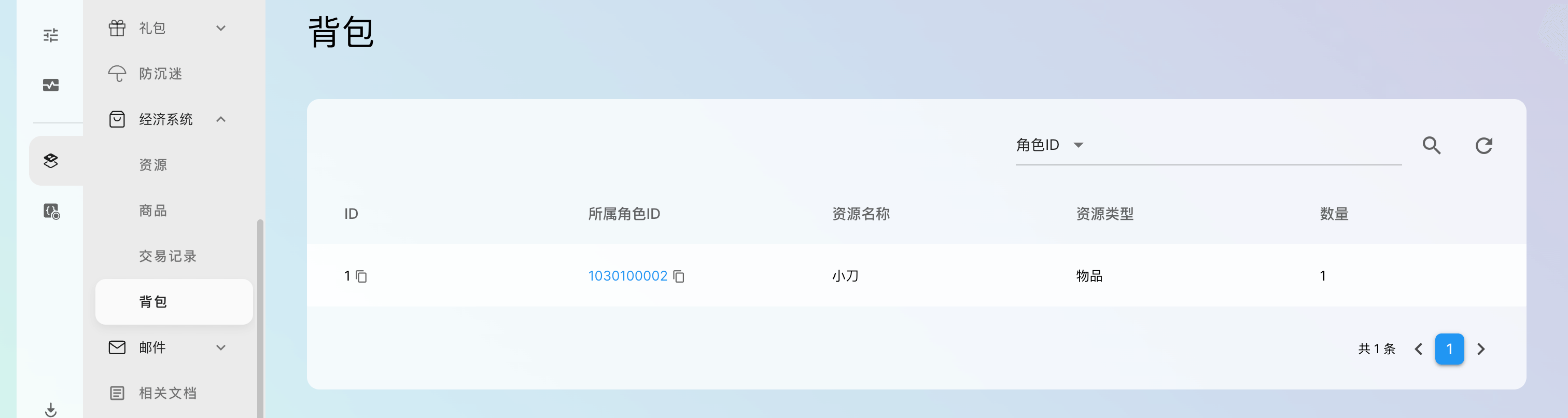 - 角色ID:背包资源所属角色ID