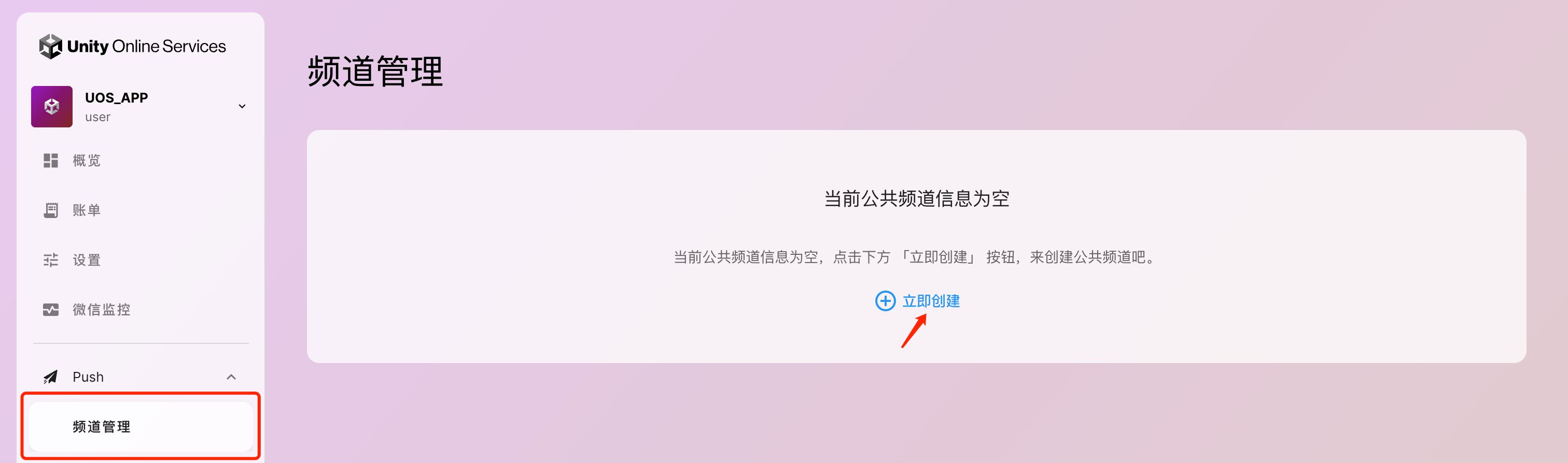 请确保您已经 创建 UOS APP 并开启 Push 服务,进入 「Push -> 频道管理」 页面。