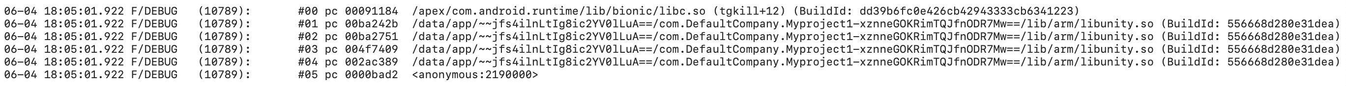Unity运行过程中的崩溃堆栈日志。