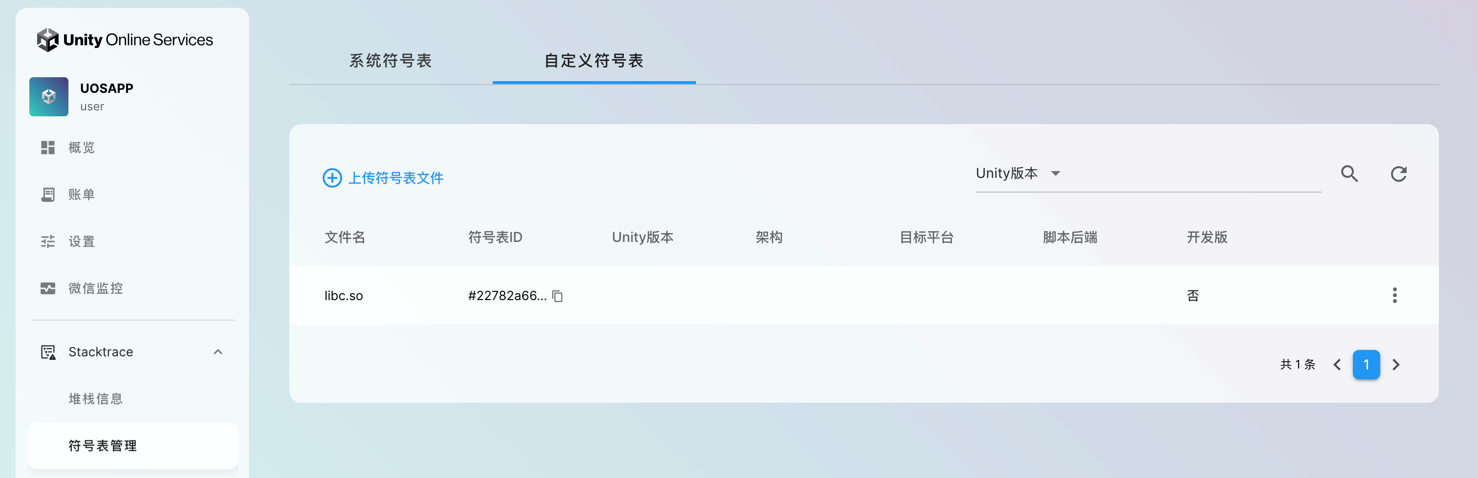 目前 UOS Stacktrace 默认包含团结引擎以及中国版Editor的符号表。Global Editor版本的符号表文件暂未上传到系统符号表文件库。