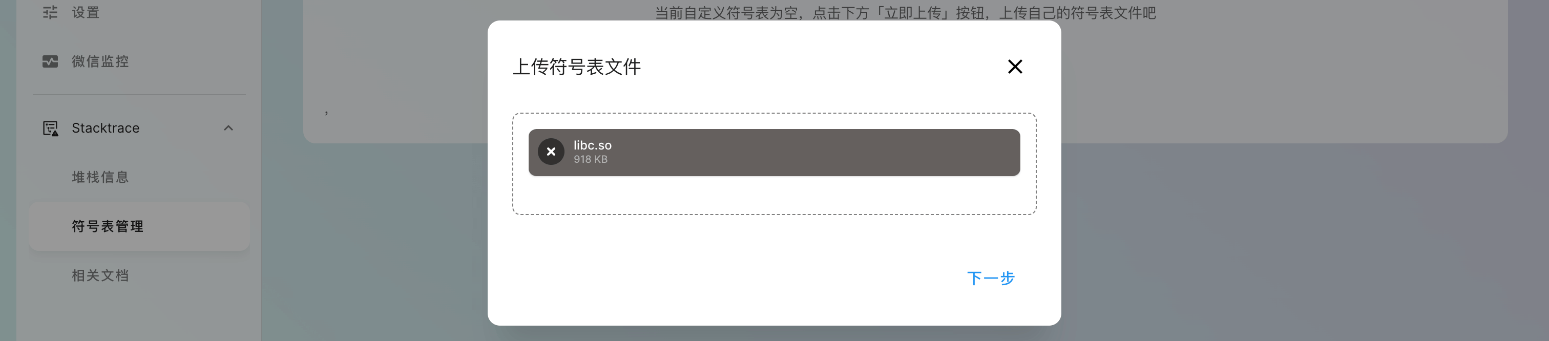 拖拽或者选取自己的符号表文件(或者符号表文件的Zip包),并点击「下一步」: